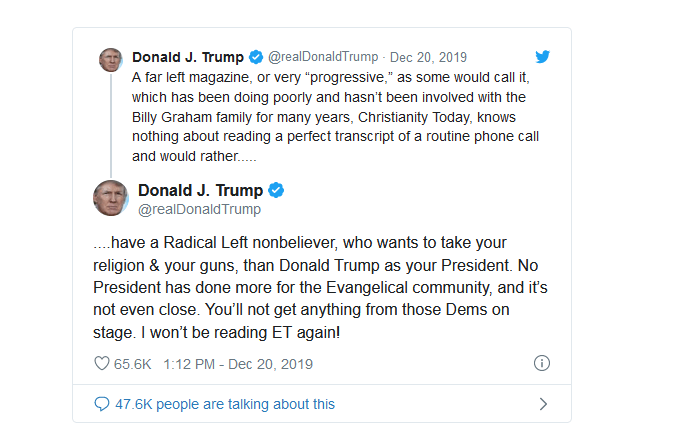 Christian faith has been never in danger so far. Mr. Trump accuses a Christian media with being leftist. He proclaimed that so called leftist media wants to take evangelicals religions and guns. It is funny because Mr. Trump also proclaim that he is kind of protector of evangelical community.